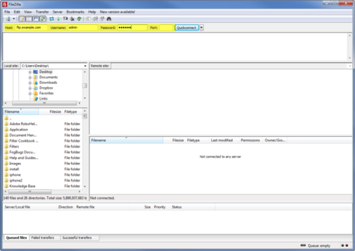 1. After downloading and modifying your ShipWorks3.php file, open your FTP client. In our example (below), we’re using FileZilla.